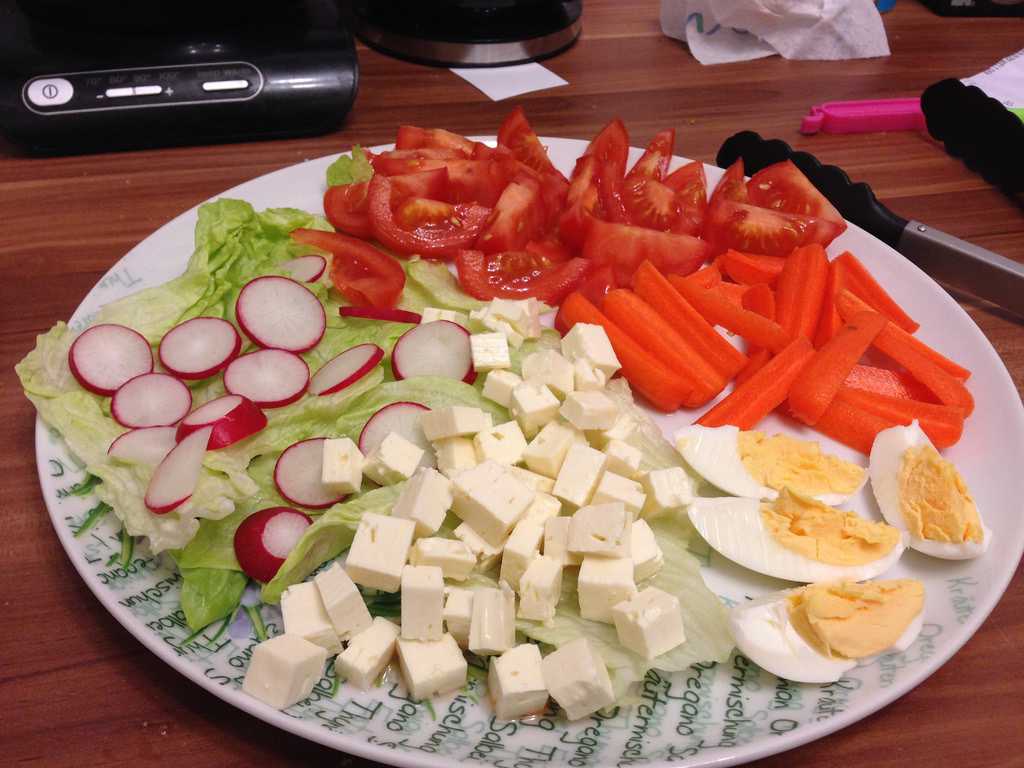 - К ужину: белково-углеводный салат.