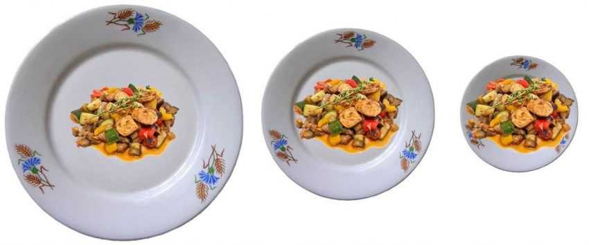 Идеальной считается тарелка диаметром 20–24 см. Дополнительные рекомендации по размеру порций таковы: порция белков должна быть размером с колоду карт, порция круп и т.д. равна 3/4 стакана в готовом виде, количество овощей в пределах половины тарелки не ограничивается.