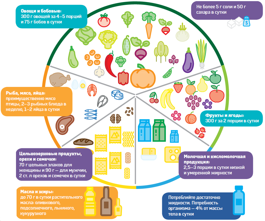 По сути, речь идет о суточном рационе, который должен удовлетворять все основные потребности организма в калориях, белках, жирах, углеводах, витаминах и микроэлементах. На вашей тарелке всегда должны присутствовать: белки, жиры и углеводы, только в разных пропорциях.