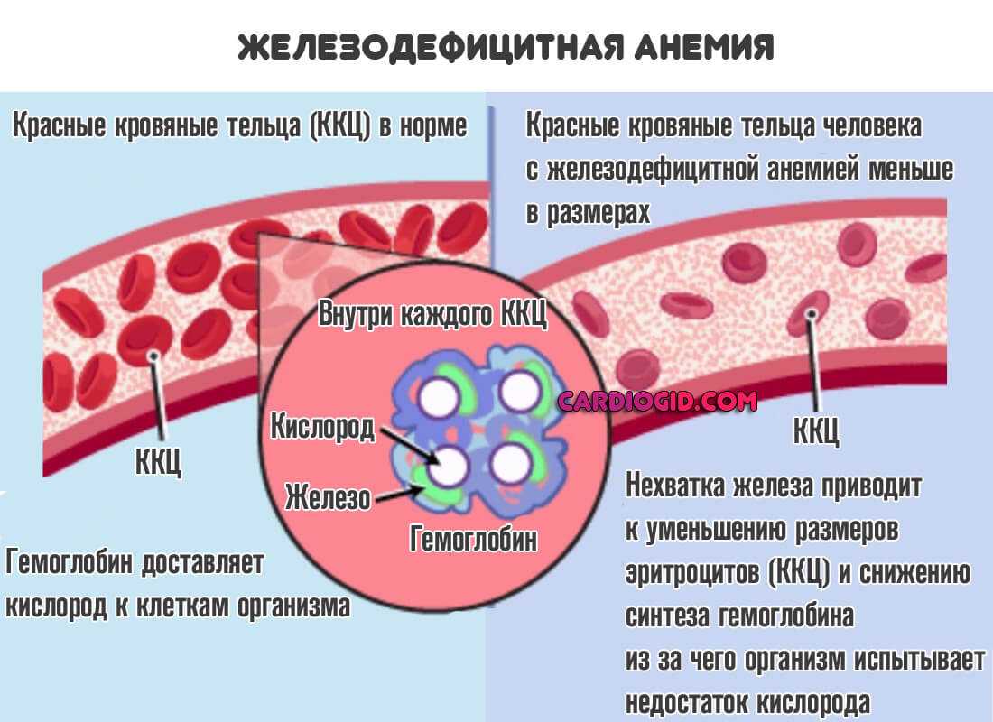 Сопровождаются нарушением кроветворения. Особенно частый вариант патологического процесса — это так называемая железодефицитная анемия. Она связана с недостатком одноименного микроэлемента.