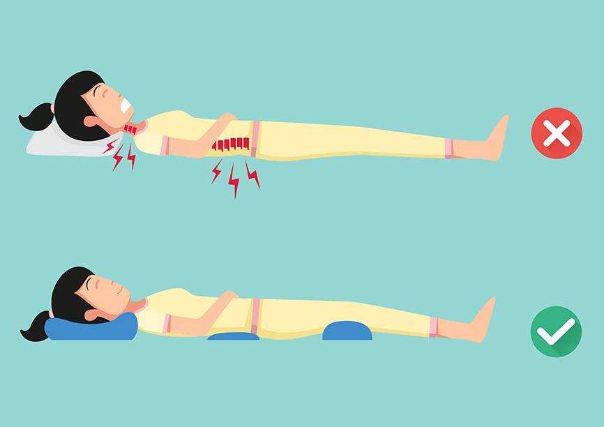 - боли в спине – ложитесь на живот, подложив под поясницу небольшую подушку (чтобы не усилить боль прогибом);