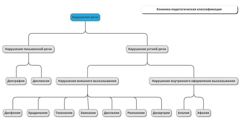 Клинико-педагогическая классификация опирается на медицинский аспект нарушения, и на основе психолого-лингвистических критериев выделяет две группы нарушений: нарушения устной речи и нарушения письменной речи.