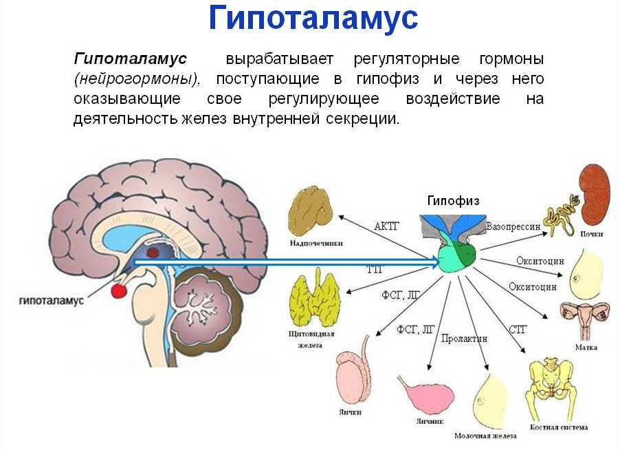 В гипоталамусе, который является наиболее важным звеном между нервной и эндокринной системой, которые уже показывает невероятную важность его правильного функционирования. Благодаря этой части мозга регулируются следующие жизненно важные функции организма: