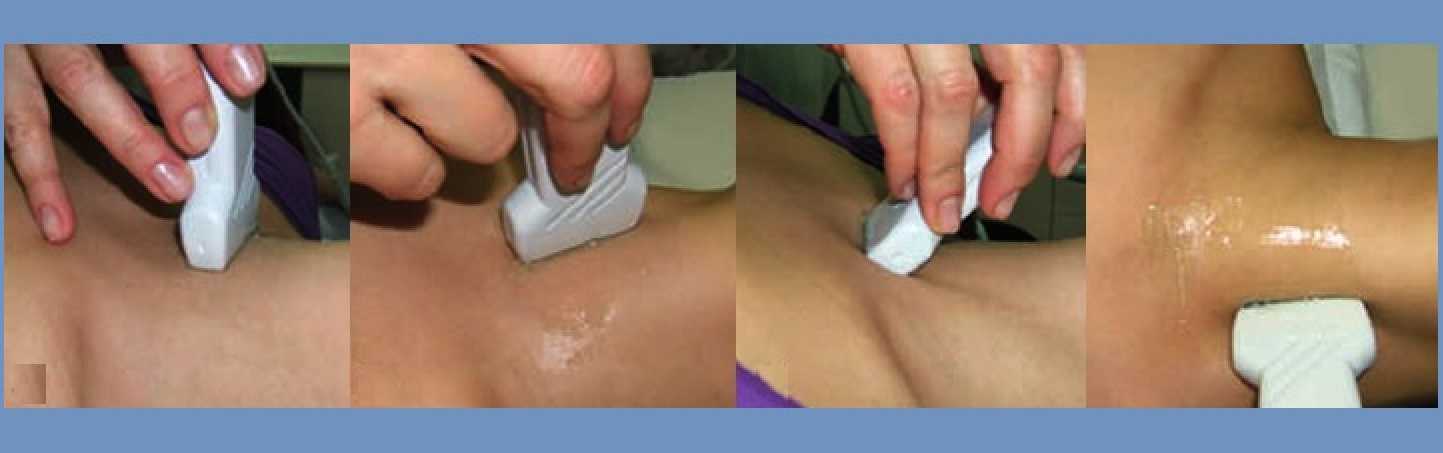 Пациент находится в положении лежа на спине с подушкой под плечи. Используют линейный датчик 10-15 МГц. Нас интересует размер, эхогенность и эхоструктура щитовидной железы