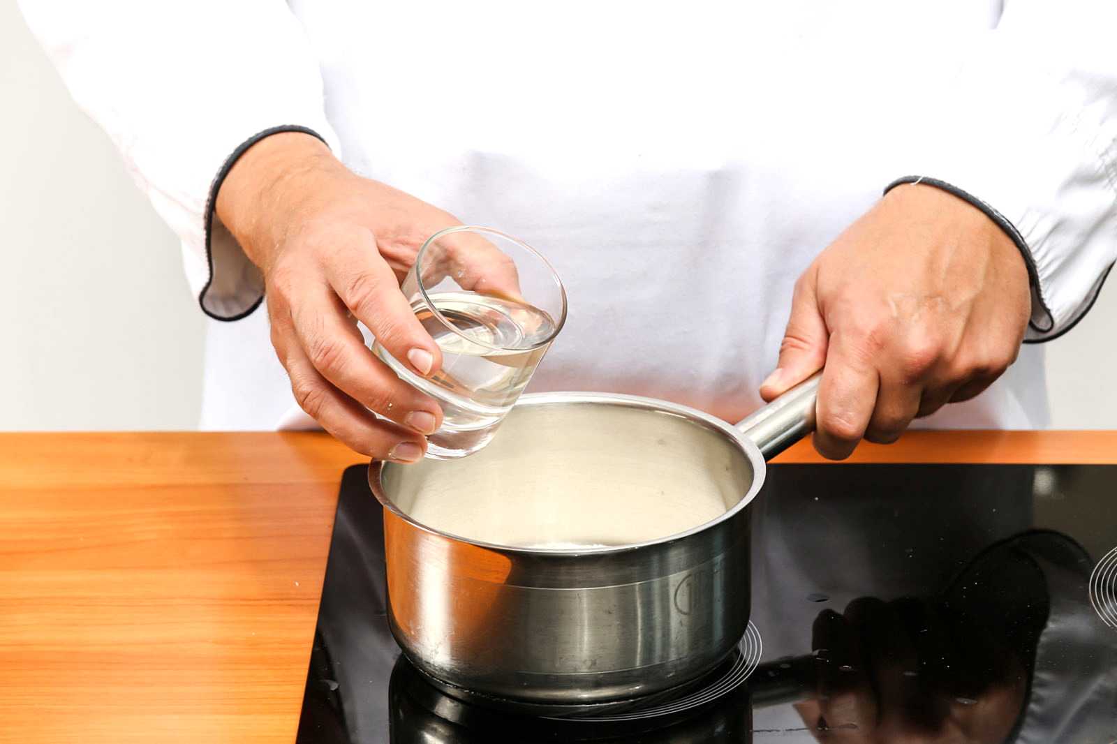 После этого поместить массу в емкость с толстым дном и поставить на плиту.