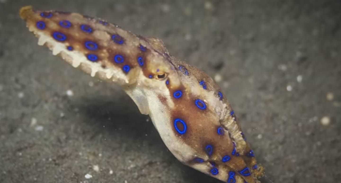 Этот вид головоногих является самым ядовитым. Отличить его от остальных довольно легко: он имеет желтую кожу с крупными синими кольцами по всему телу. Вырастают осьминоги всего лишь до 10 см в длину и весят 100 грамм. Человеку их бояться не стоит, т.к. они нападают только в случае опасности, так что достаточно просто не трогать их руками. Обитают синекольчатые осьминоги только возле берегов Австралии, поэтому жителям других стран встреча с ними не грозит.